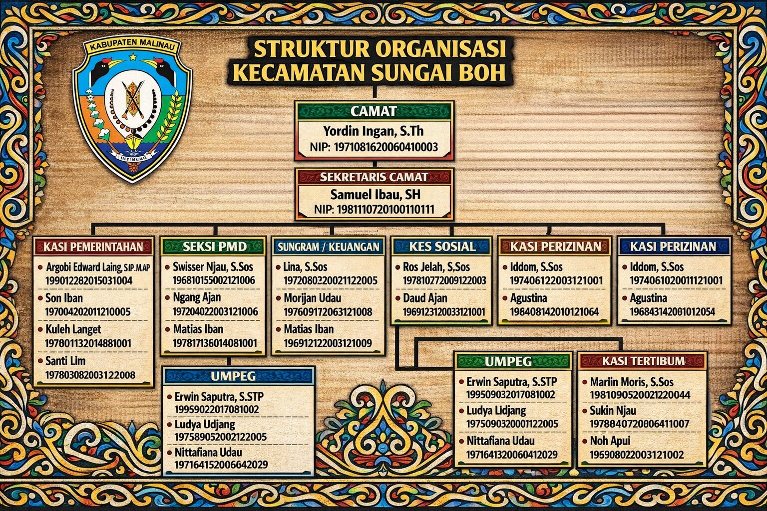 Struktur Organisasi Kecamatan Sungai Boh :